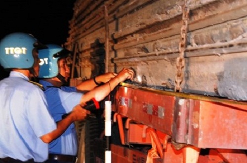 Đến khoảng 22h ngày 24-5, lực lượng Thanh tra giao thông (Sở GTVT tỉnh Vĩnh Long) nhận được tin báo về xe chở quá tải nói trên và đã có mặt tại hiện trường. Thời điểm này tài xế đã khóa cửa cabin xe và bỏ đi nơi khác đến tận chiều tối 25-5 vẫn không xuất hiện.