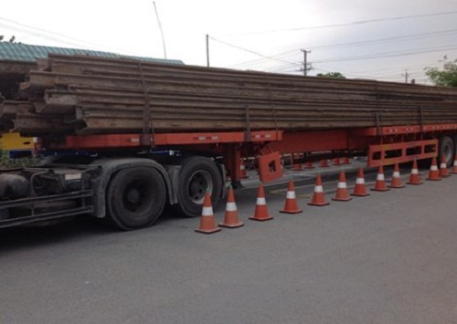 Trưa 24-5, xe đầu kéo (BKS 63C-034.89) nằm trong công trường thi công Trung tâm thương mại Lotte Mart Cần Thơ (số 84 Mậu Thân, phường An Hoà, quận Ninh Kiều, TP Cần Thơ) kéo theo rơ-mooc chở 50 thanh cừ larsen dài trên 18m.