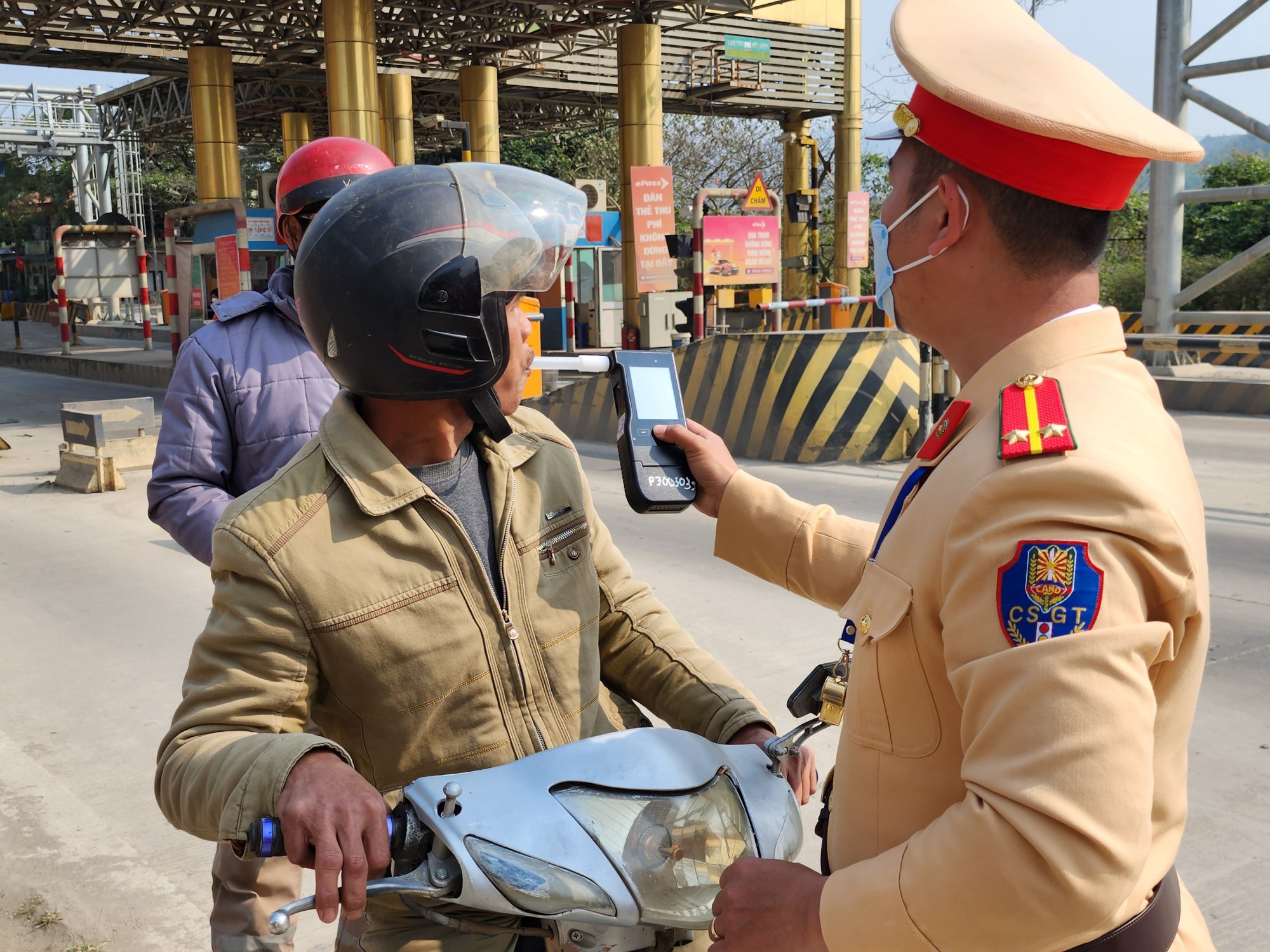 Theo ghi nhận, trong khoảng thời gian từ 13 - 14h ngày 28/2, tổ công tác đã dừng hàng trăm phương tiện ô tô nhưng không phát hiện trường hợp lái xe vi phạm nồng độ cồn. Sau đó, tổ công tác tiến hành dừng xe máy BKS: 21B2-274.xx do anh Đinh Văn Q. (sinh năm 1969, ở huyện Văn Chấn, tỉnh Yên Bái) điều khiển. Kết quả, sau khi tiến hành kiểm tra nồng độ cồn, anh Q. vi phạm 0,243 mi li gam/lít khí thở. Tổ công tác đã tiến hành lập biên bản xử lý và yêu cầu người vi phạm gọi điện thoại cho người thân đến để đưa về.