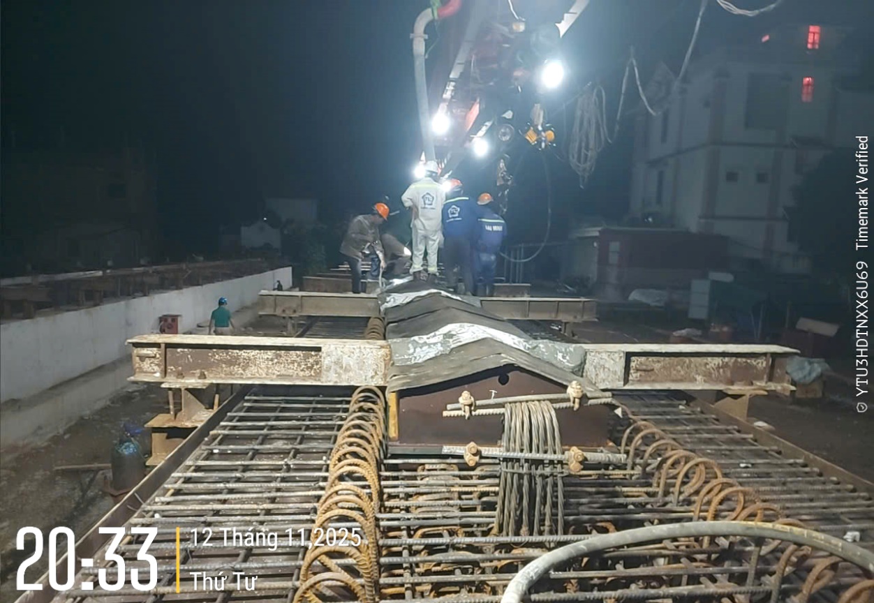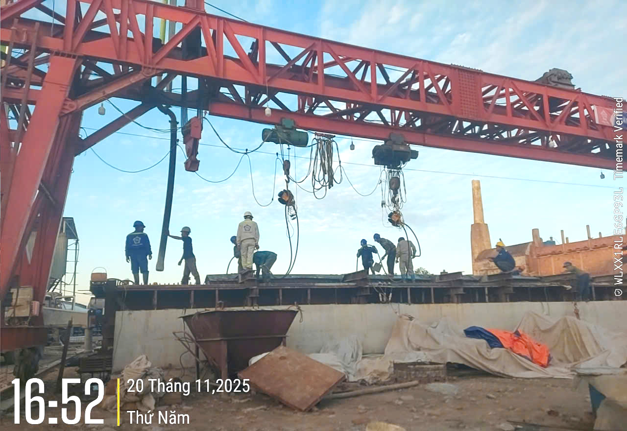 Sau khi hợp đồng được ký kết ngày 20/9/2025, Tổng công ty Thăng Long đã khẩn trương huy động nhân lực, thiết bị đáp ứng yêu cầu thi công, trong đó tập trung vào các hạng mục đúc dầm Super T và cọc khoan nhồi đường kính D1200 mm trong phạm vi đã được giao.