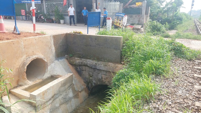 Cụ thể, tại lý trình đường sắt Km 99+850 bên phải tuyến theo hướng Hà Nội – Lào Cai, đơn vị thi công đã lắp đặt xong 1 cống tròn đường kính 800mm. Miệng cống hở, nằm trên mép rãnh dọc đường sắt, cách mép ray ngoài cùng 4,7m, vuông góc với đường sắt nên dẫn đến khi lượng nước lớn, chảy mạnh sẽ xả thẳng vào đường sắt, gây xói mòn đường. Đơn vị thi công lý giải, cống trên thay thế cho cống hộp cũ có đường kính 1.200mm tại cùng vị trí.