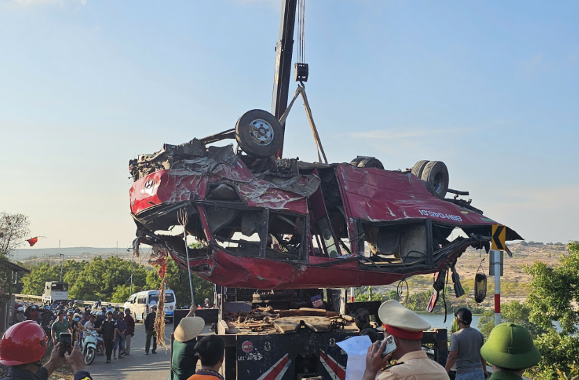 Trước đó, khoảng 15h30 ngày 06/4, xe khách 29 chỗ biển số 86H-045.61 do tài xế Trần Thanh Sơn (SN 1988, ngụ tỉnh Cà Mau) điều khiển, chở 16 thợ lặn di chuyển từ hướng Mũi Né về Phan Rí Cửa.