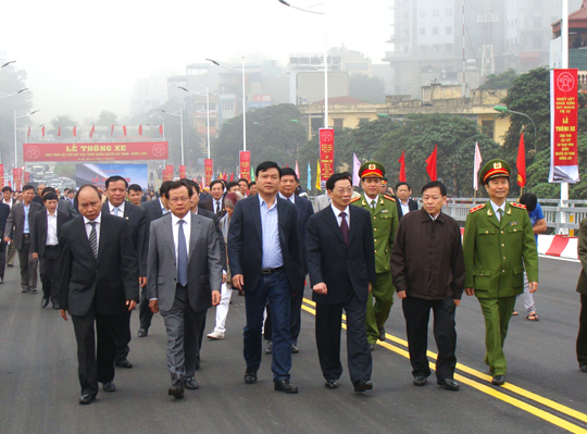 Các đại biểu cắt băng thông xe cầu vượt nút giao thông đường Nguyễn Chí Thanh – Đường Láng