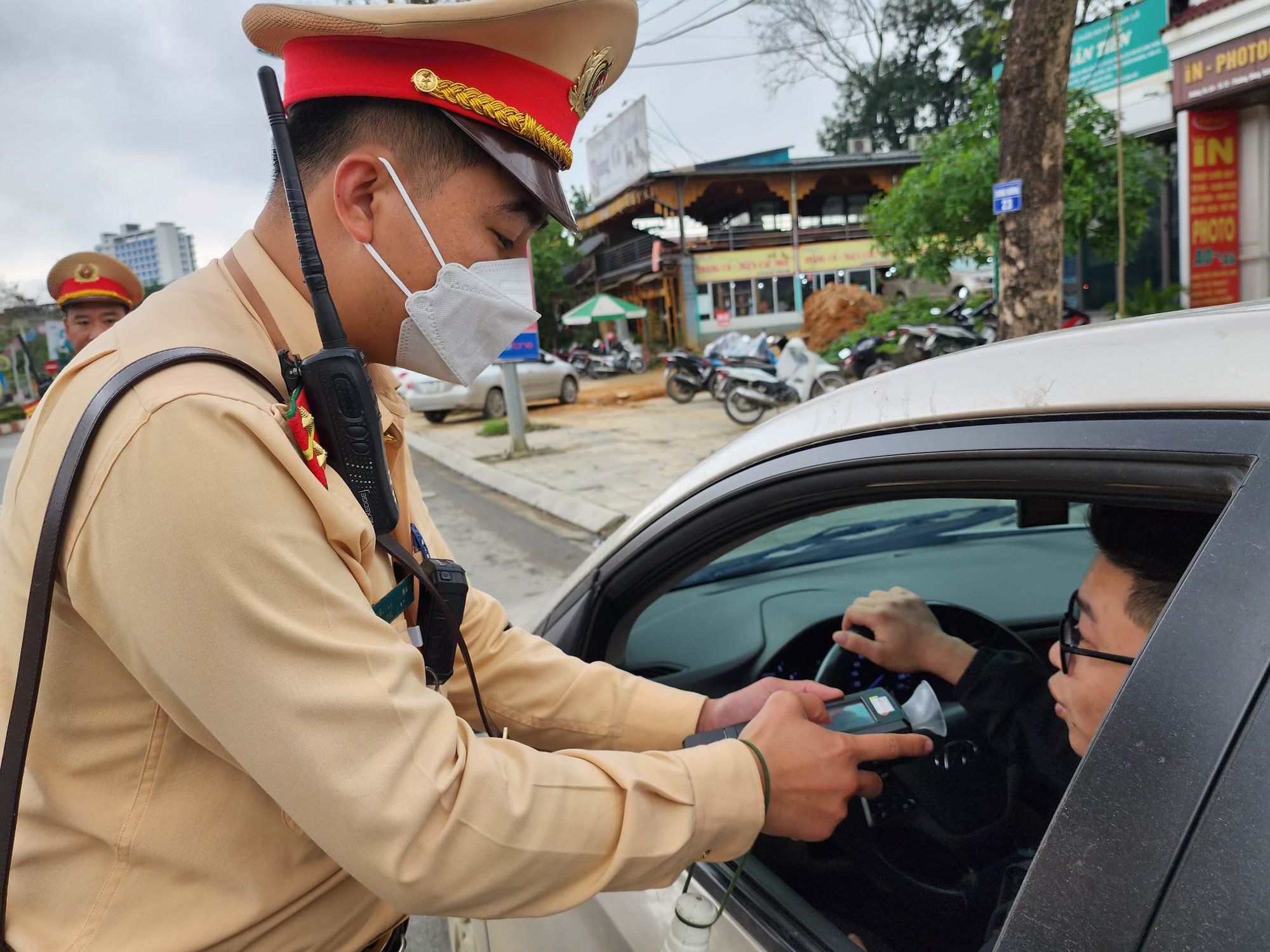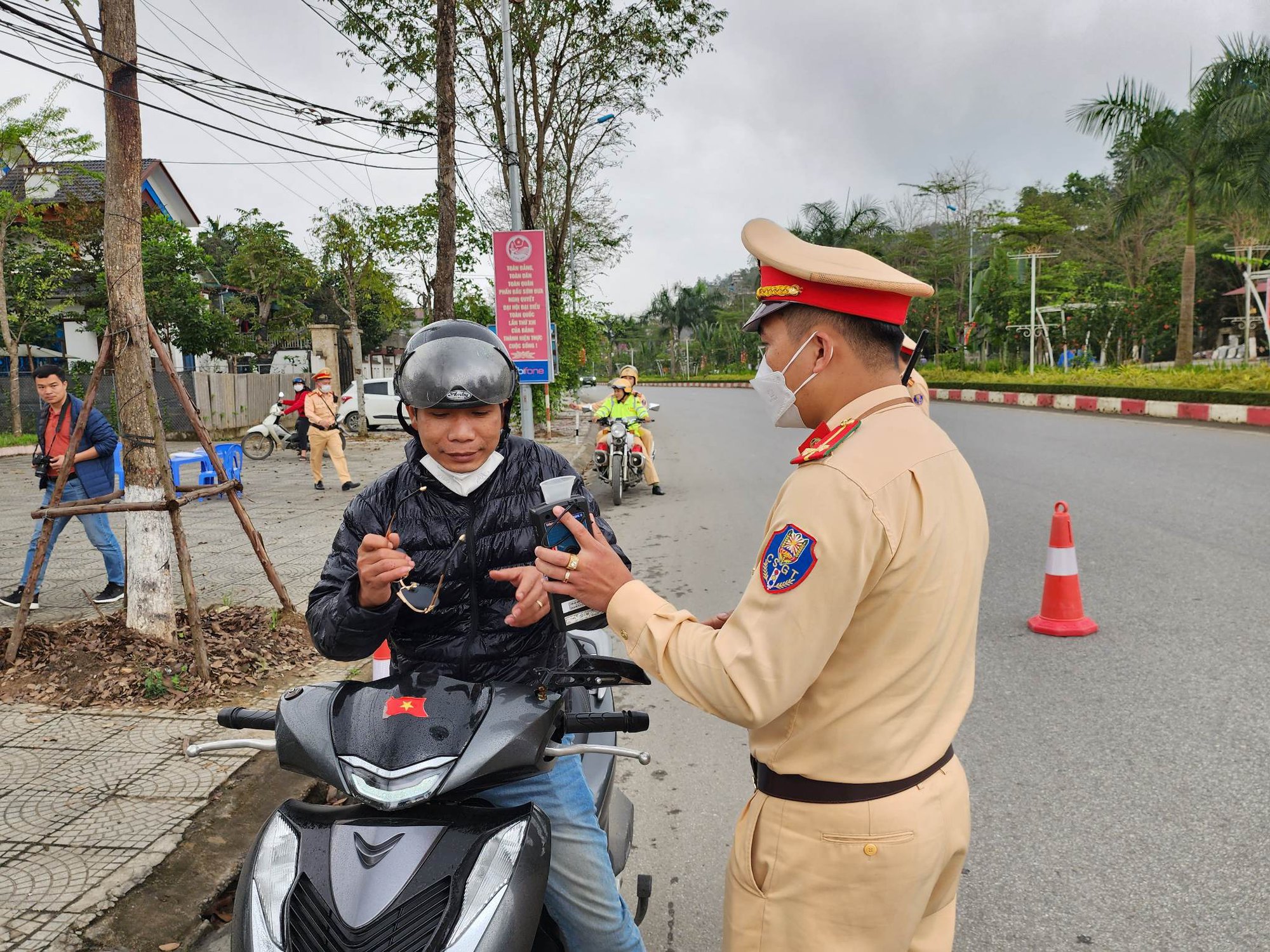 Tổ công tác Đội CSGT đường bộ số 1, Phòng CSGT Công an tỉnh Yên Bái kiểm tra chuyên đề nồng độ cồn đối với người điều khiển trên địa bàn