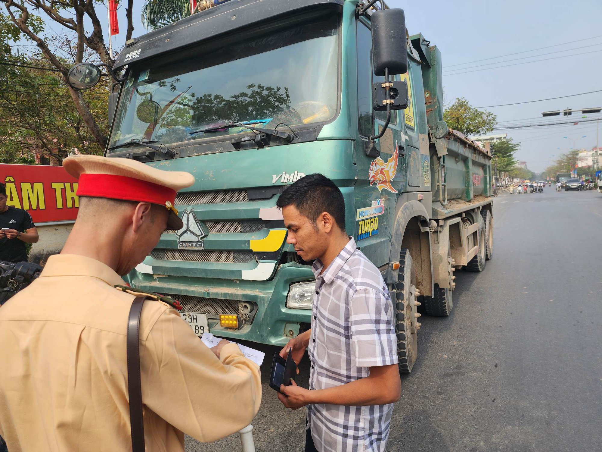 Một số hình ảnh, lực lượng CSGT kiểm tra xử lý xe tải "hổ vồ" trên địa bàn Hà Nội
