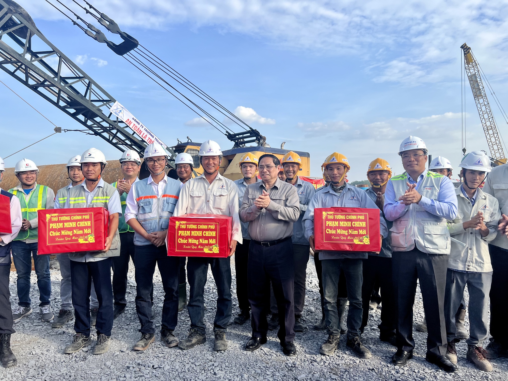 Thủ tướng tặng quà cho công nhân đang thi công tại dự án