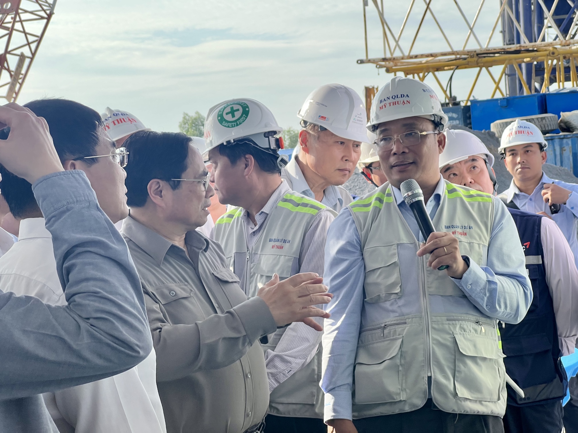 Ông Trần Văn Thi, Giám đốc Ban QLDA Mỹ Thuận báo cáo về tình hình thực hiện dự án