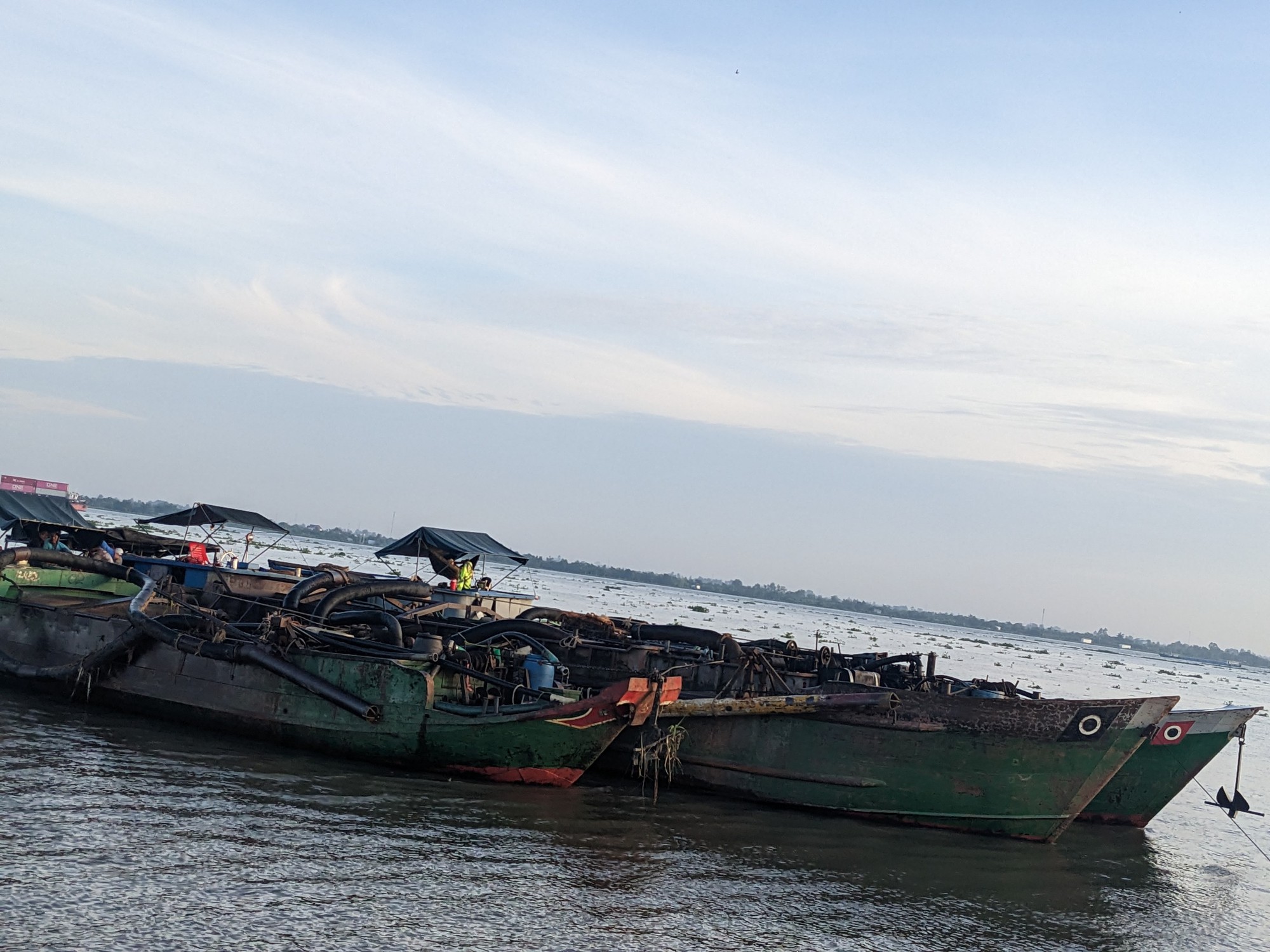 Sáng 5/6, Đại tá Trần Nhật Long, Thủy đoàn trưởng Thủy đoàn II (Cục CSGT) cho biết, đơn vị đã chủ trì, phối hợp cùng Công an tỉnh Tiền Giang và Vĩnh Long bắt giữ 7 tàu khai thác cát trên sông, thu giữ hơn 600m3 cát.