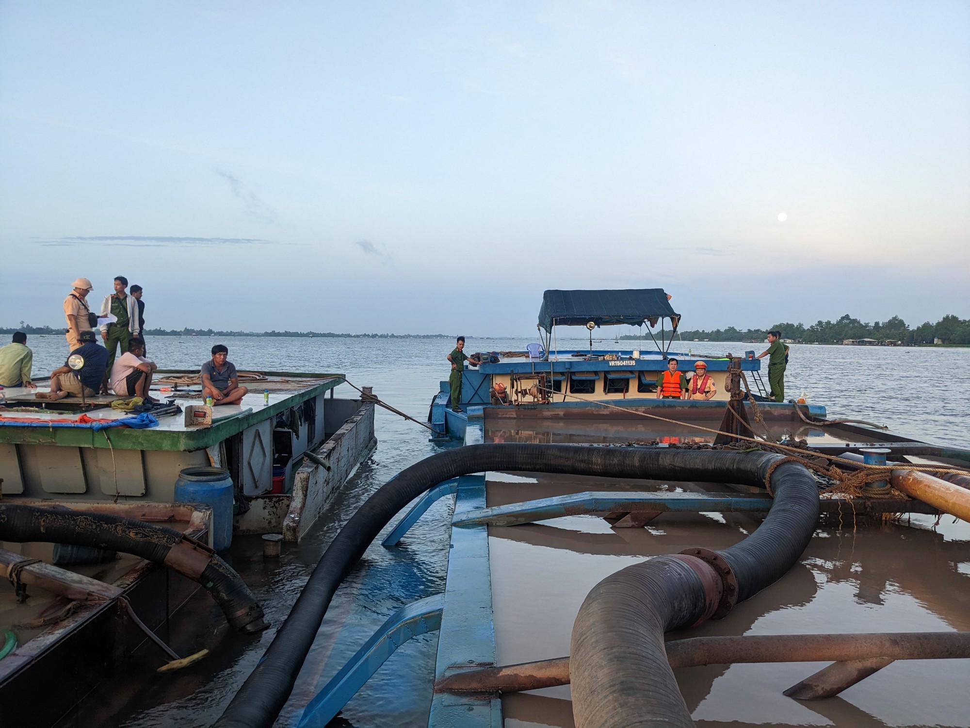 Tại thời điểm kiểm tra, trên các phương tiện có gần 600m3 cát, thuyền viên trên phương tiện không xuất trình được giấy tờ và bằng cấp chứng chỉ chuyên môn. Qua đấu tranh khai thác ban đầu, các đối tượng thừa nhận hành vi khai thác cát trái phép.