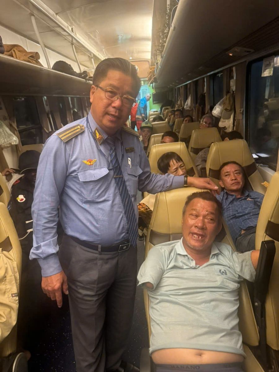 Ngay từ giây phút đầu tiên tại ga Vinh, các nhân viên đường sắt, dù trên tàu hay dưới ga đã chủ động phối hợp để bế anh lên tàu một cách an toàn. Suốt nhiều giờ đồng hồ trên hành trình hướng về phương Nam, tổ tàu SE3 đã thực sự trở thành những người bạn đồng hành thân thiết nhất của anh. Từ việc hỗ trợ những nhu cầu sinh hoạt cá nhân cho đến từng thìa cơm, ngụm nước trong mỗi bữa ăn, nhân viên đường sắt đã phục vụ bằng một sự kiên nhẫn và lòng trắc ẩn đáng khâm phục.