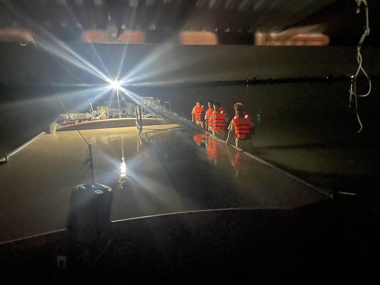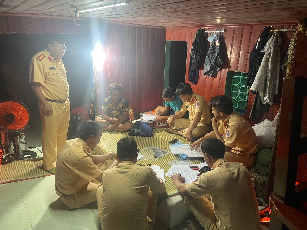Lực lượng chức năng kiểm tra 5 người làm việc trên tàu gồm: ông N.V.H. (SN 1967) là người điều khiển phương tiện; ông D.V.H. (SN 1983) là người điều khiển máy hút cát; ông P.V.P. (SN 1974) là người vận hành máy hút; ông N.V.D. (SN 1986) là người làm dây; ông N.V.T. (SN 1983) là người làm việc trên tàu. Những người này cùng trú tại huyện Thanh Hà (Hải Dương).
