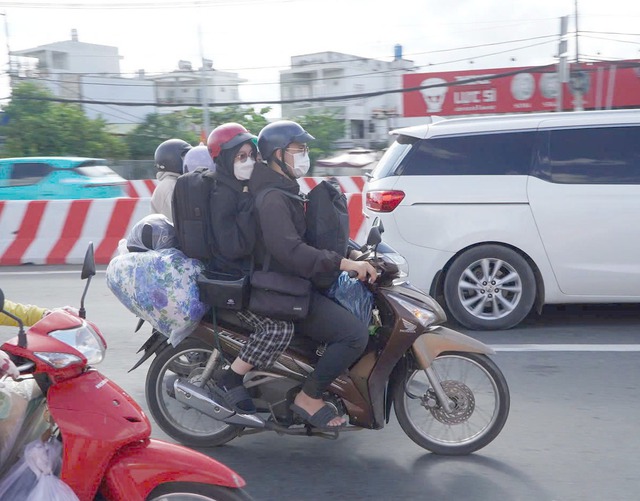 Anh Nguyễn Văn Nam (45 tuổi, quê Cần Thơ) chia sẻ, sau vài ngày nghỉ lễ ở quê, hôm nay tôi tranh thủ cùng vợ con đi xe máy quay trở lại TP.HCM sớm để nghỉ ngơi, ngày mai bắt đầu đi làm việc trở lại. Tuy nhiên, lượng phương tiện quá đông khiến gia đình phải di chuyển chậm.
