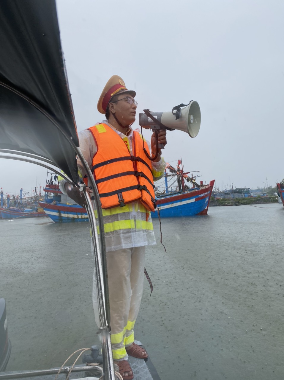 Cảnh sát đường thủy hướng dẫn phương tiện tìm nơi tránh trú bão