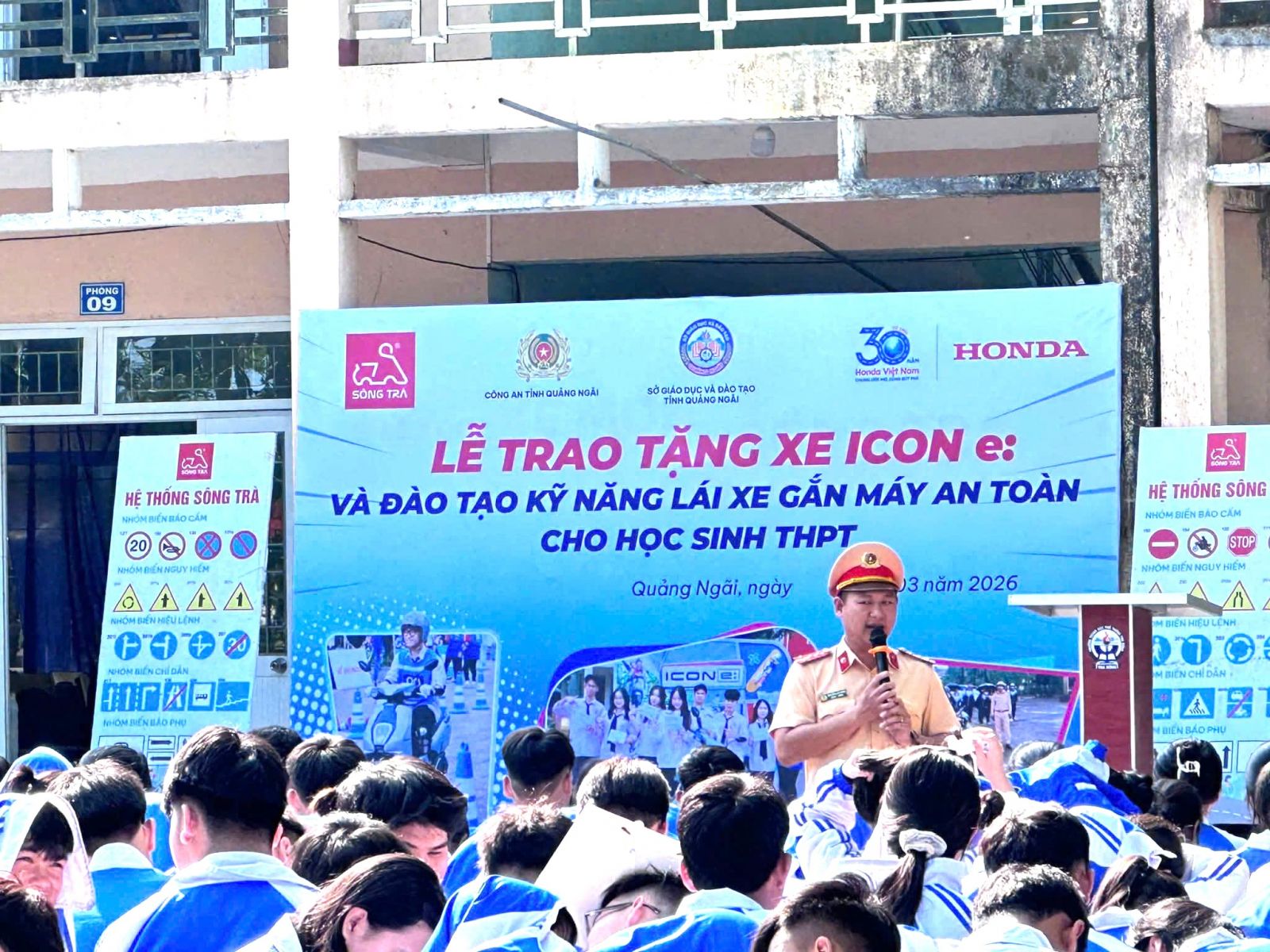 Trong khuôn khổ chương trình, Ban Tổ chức đã trao tặng nhà trường 1 xe điện Honda ICON e phục vụ công tác giảng dạy và thực hành kỹ năng lái xe an toàn. Đây là hoạt động có ý nghĩa thiết thực, góp phần nâng cao chất lượng giáo dục kỹ năng sống và ý thức tham gia giao thông cho học sinh.