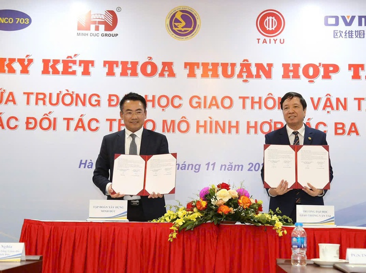 Chia sẻ về ý nghĩa hợp tác, ông Trần Đại Nghĩa - Tổng Giám đốc Tập đoàn Xây dựng Minh Đức cho biết, khi lựa chọn hợp tác với Trường Đại học GTVT giúp Minh Đức Group tiếp cận tri thức khoa học mới, đồng thời đóng góp trở lại cho đào tạo bằng chính kinh nghiệm thực tế của doanh nghiệp. Chúng tôi tin rằng, khi doanh nghiệp và nhà trường cùng hành động, sẽ hình thành được thế hệ kỹ sư có tư duy thực tế, hiểu công nghệ và đủ năng lực đáp ứng các dự án hạ tầng quy mô lớn trong tương lai.