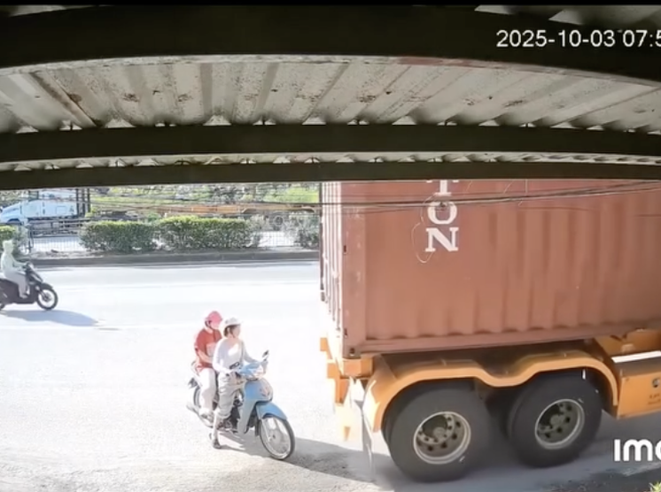 Cụ thể, hai cô gái trên xe máy dừng cạnh lề đường mà không quan tâm phía trước đang có chiếc container lùi. Trong vài giây, xe container trên lùi đã khiến chiếc xe máy bị cuốn vào trong gầm. Rất may, cả 2 người đi xe máy kịp bỏ chạy nên không có thương vong về người, nhưng xe thì đã bị hư hỏng.