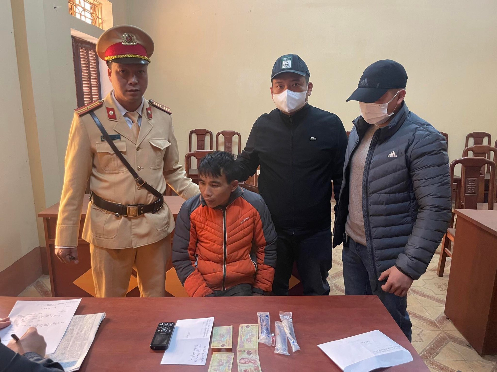 Tại chốt kiểm tra, người điều khiển xe máy 22S1-249.84 được xác định tên là Nguyễn Văn Đông (sinh ngày 28/6/1989, trú tại tổ dân phố Làng Cả, thị trấn Sơn Dương, huyện Sơn Dương, tỉnh Tuyên Quang). Theo đó, tổ công tác yêu cầu kiểm tra hành chính thì phát hiện trên người Nguyễn Văn Đông có một gói tinh bột màu trắng, nghi là heroin. Ngay sau đó, Nguyễn Văn Đông cũng khai nhận gói tinh bột màu trắng trên là heroin.