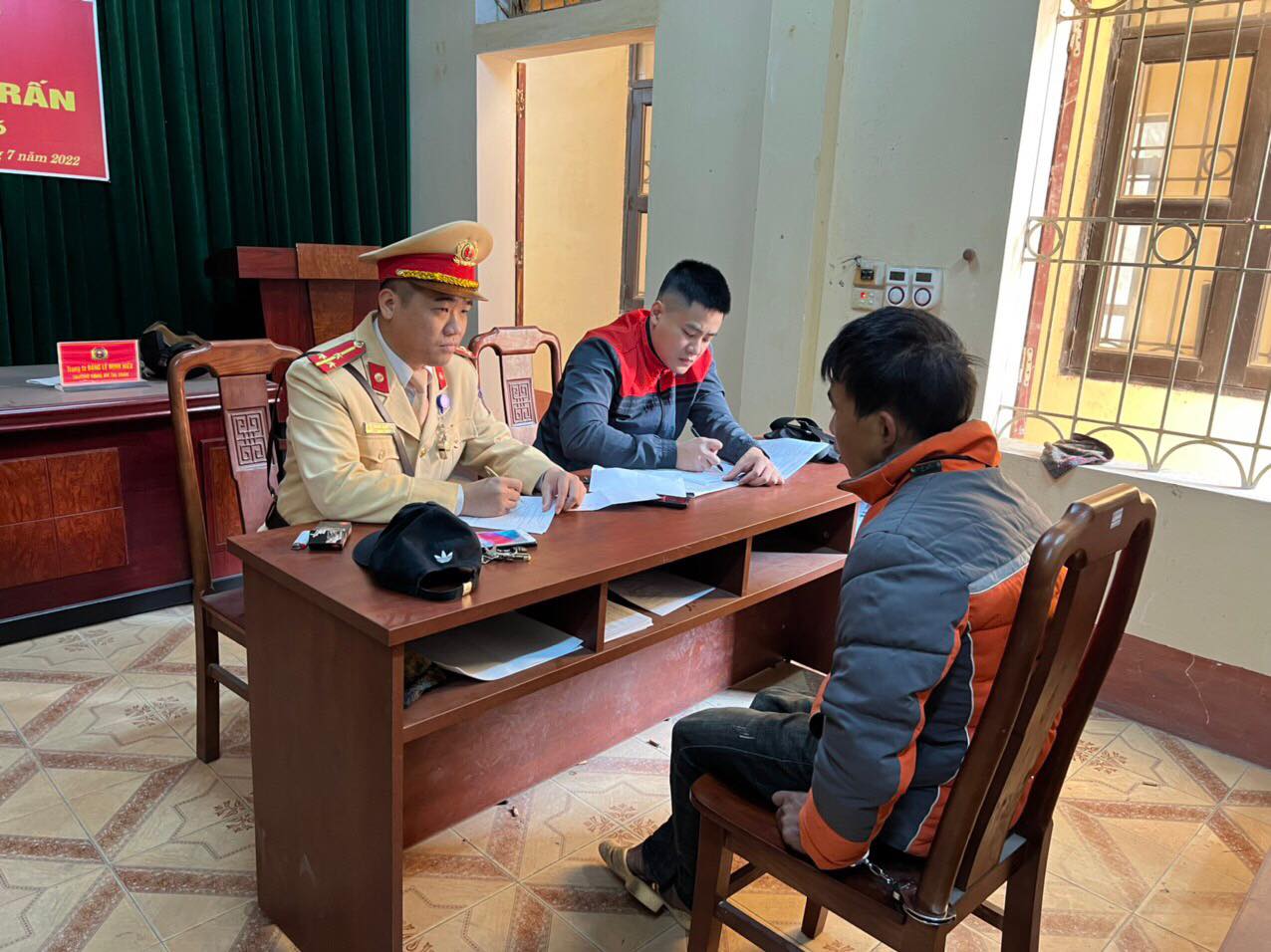 Một số hình ảnh tổ công tác Phòng CSGT Công an tỉnh Tuyên Quang bàn giao đối tượng Nguyễn Văn Đông và tang vật cho Công an Thị trấn Sơn Dương