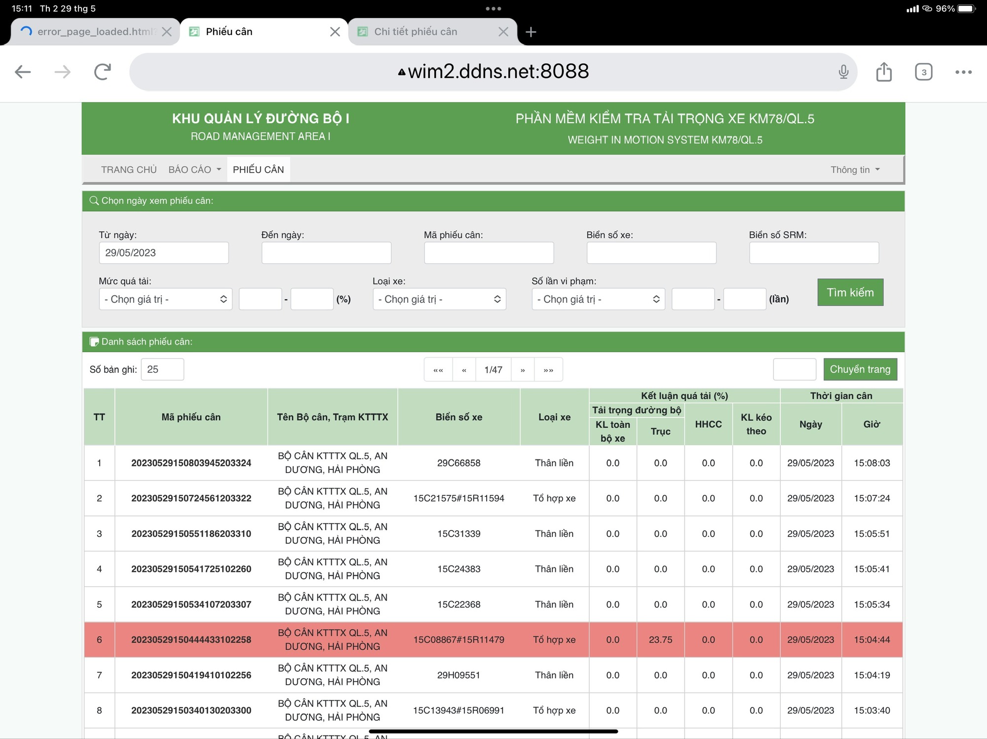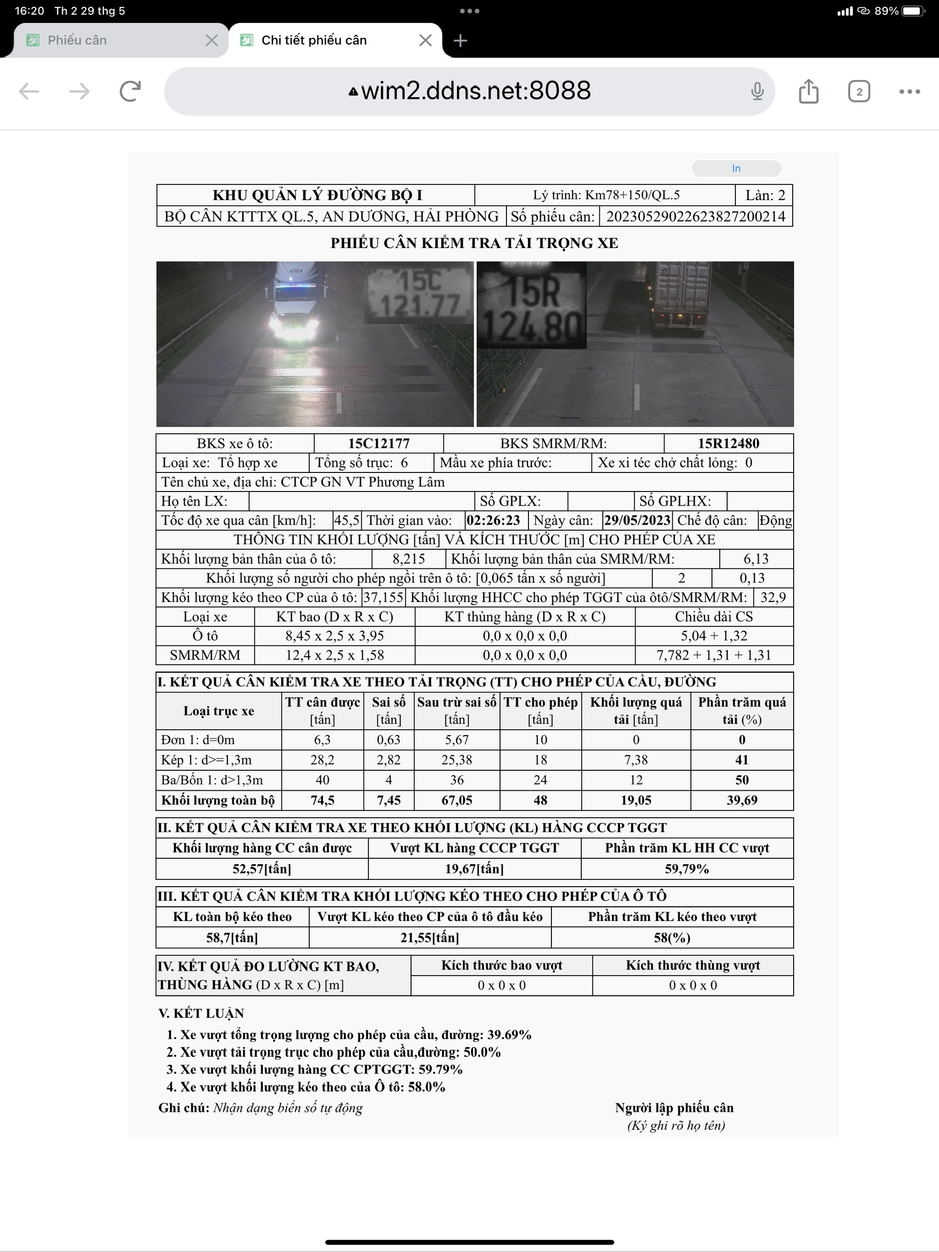 100% phương tiện được kiểm soát và trích xuất hình ảnh phương tiện, phiếu cân khi vi phạm