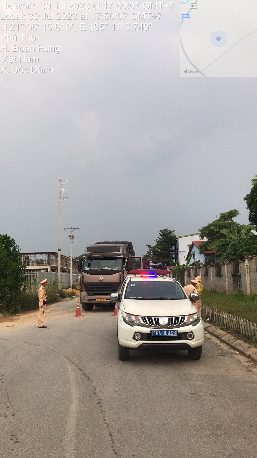 Một số hình ảnh CSGT tỉnh Tuyên Quang phối hợp CSGT tỉnh Phú Thọ bắt xe tải đầu kéo hết đăng kiểm, chở hàng vượt quá chiều cao bỏ chạy trên Quốc lộ 2