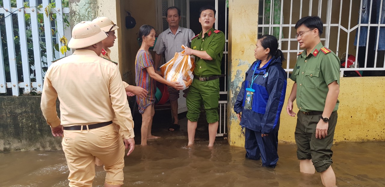 Cụ thể, cùng với việc triển khai lực lượng xuống hiện trường phối hợp cùng lực lượng chức năng địa phương, tổ công tác của Thủy đoàn 1 đã phối hợp với Công an quận Liên Chiểu (Đà Nẵng) trao hơn 100 phần quà trị giá khoảng 25 triệu đồng là những nhu yếu phẩm thiết yếu phục vụ đời sống hằng ngày của người dân.
