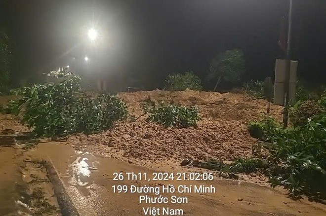 Vào lúc 20h ngày 26/11, tại Km1380+500 tuyến đường Hồ Chí Minh (QL14) thuộc địa phận thị trấn Khâm Đức (huyện Phước Sơn, tỉnh Quảng Nam) xảy ra sạt lở ta-luy dương làm ách tắc giao thông hoàn toàn. Khối lượng đất sạt lở vùi lấp mặt đường ước tính khoảng 2.000 m3. Đây là đoạn đường đôi khu vực nội thị thị trấn Khâm Đức, là tuyến giao thông huyết mạch ra vào Tây Nguyên, kết nối với miền Trung, có lưu lượng phương tiện lưu thông lớn.