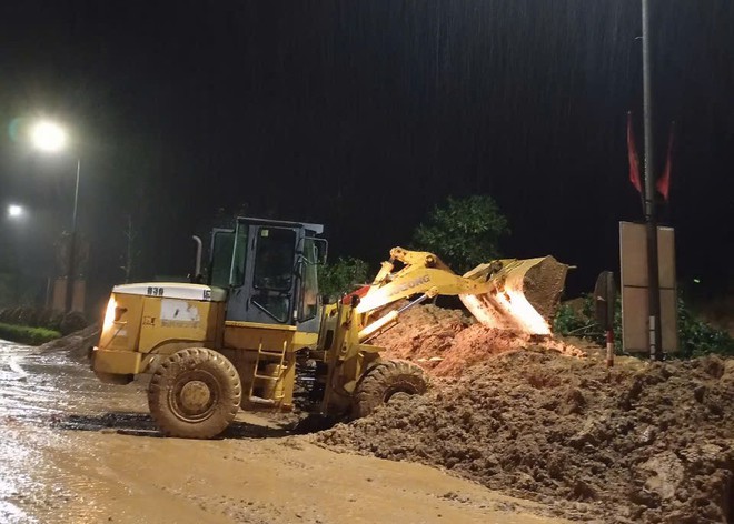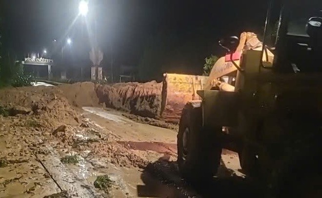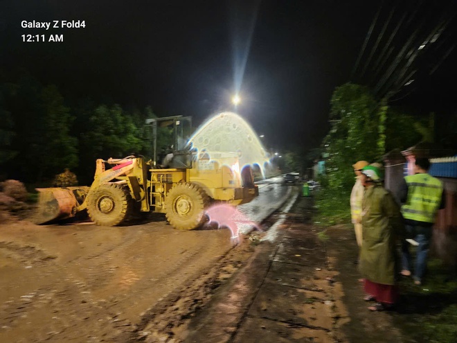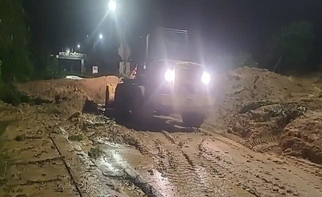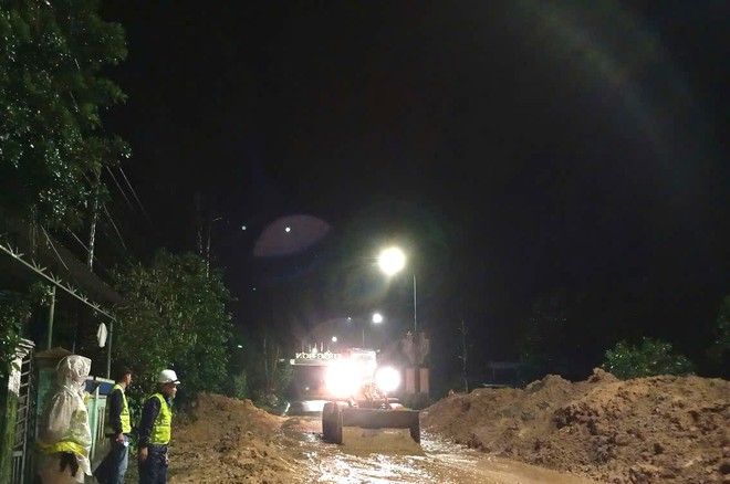 Cận cảnh hiện trường công tác khắc phục sạt lở xuyên đêm, đảm bảo giao thông tuyến đường Hồ Chí Minh qua thị trấn Khâm Đức