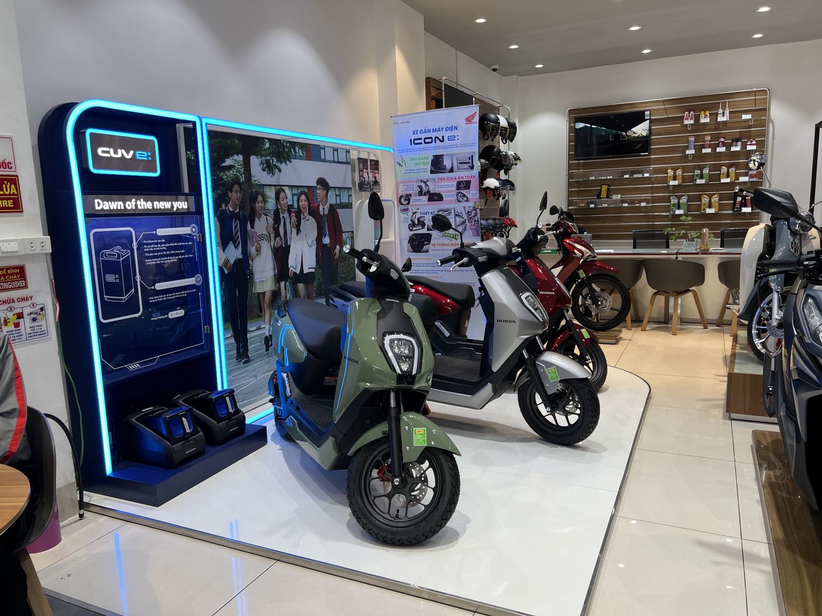 Xe máy điện Honda ICON e: được trang bị động cơ đặt ở bánh sau với công suất 1,5 kW (2 mã lực), phù hợp chuẩn xe điện không yêu cầu bằng lái. Tốc độ tối đa 50 km/h.