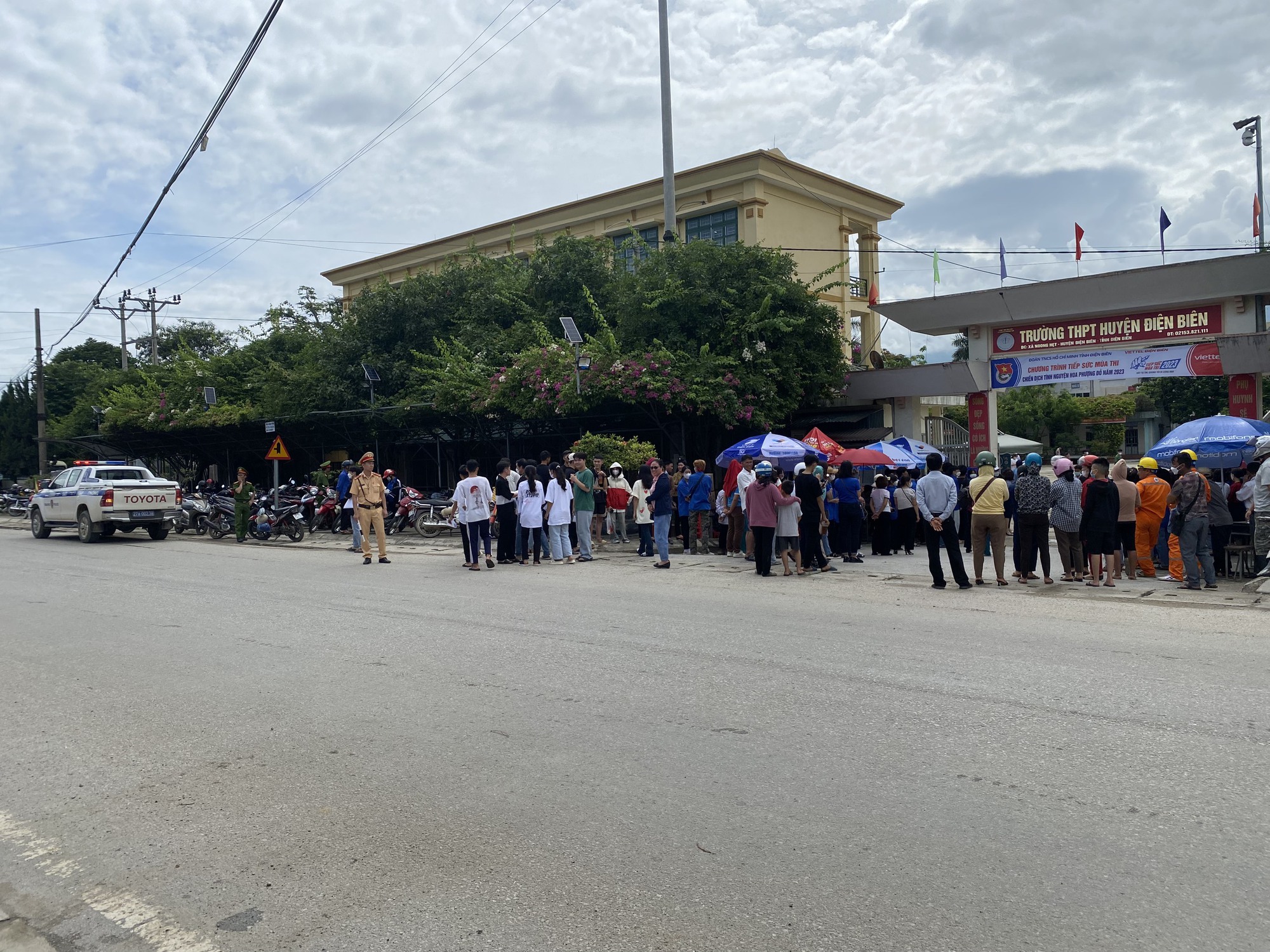 Lực lượng CSGT Điện Biên dùng xe môtô đưa thí sinh đến trường và đảm bảo trật tự ATGT tại cổng trường học trên địa bàn