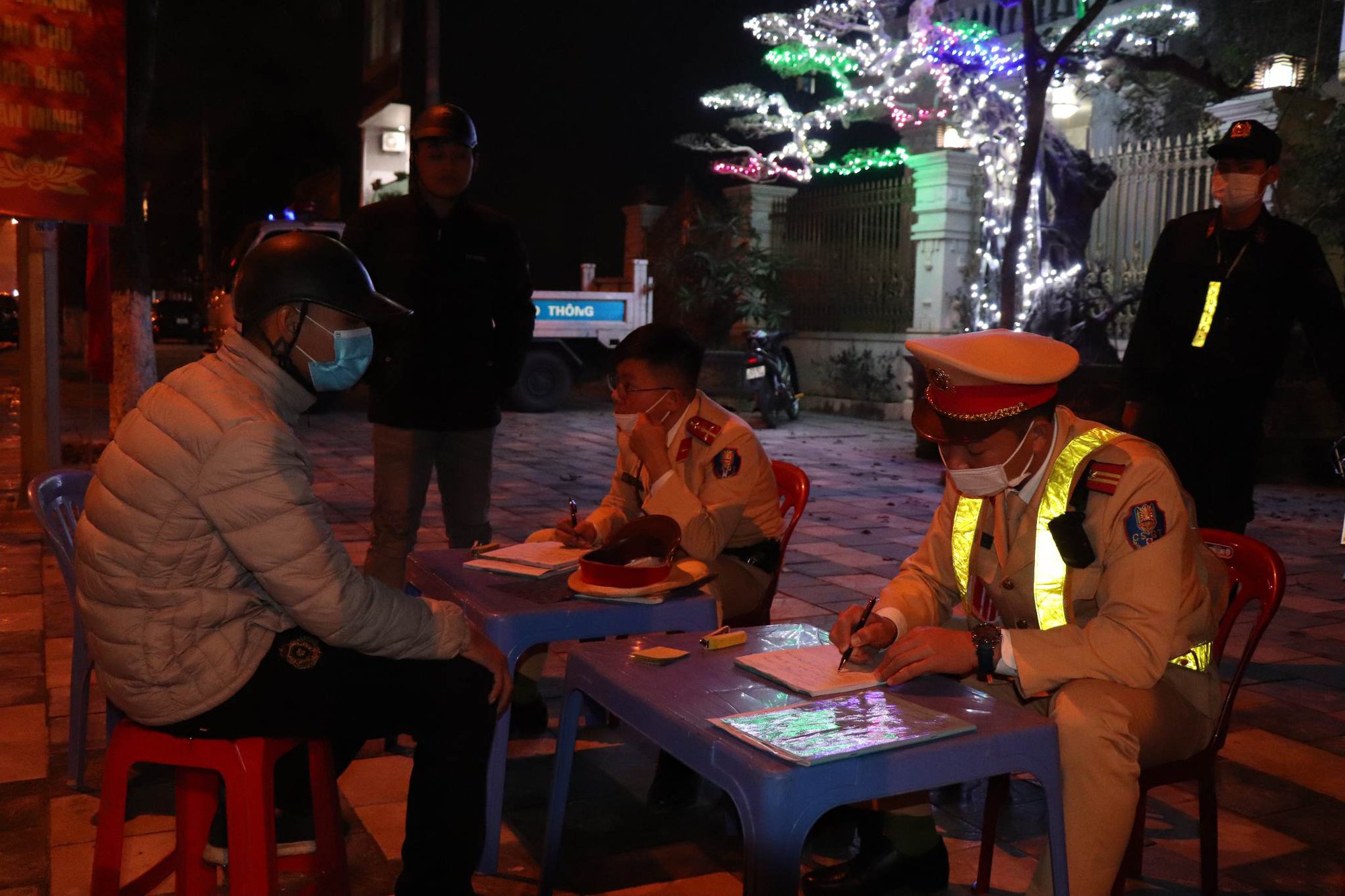 Tại chốt kiểm tra, người phụ nữ điều khiển xe máy 21B2-225.xx cho biết tên là Lương Thị Ngọc V. (sinh năm 1999, ở Tp Yên Bái, tỉnh Yên Bái). Chị V. nói uống rượu từ nhỏ, đi chúc Tết vui uống nhiều, không nghĩ có cảnh sát kiểm tra trong ngày Tết, rồi kí vào biên bản vi phạm.